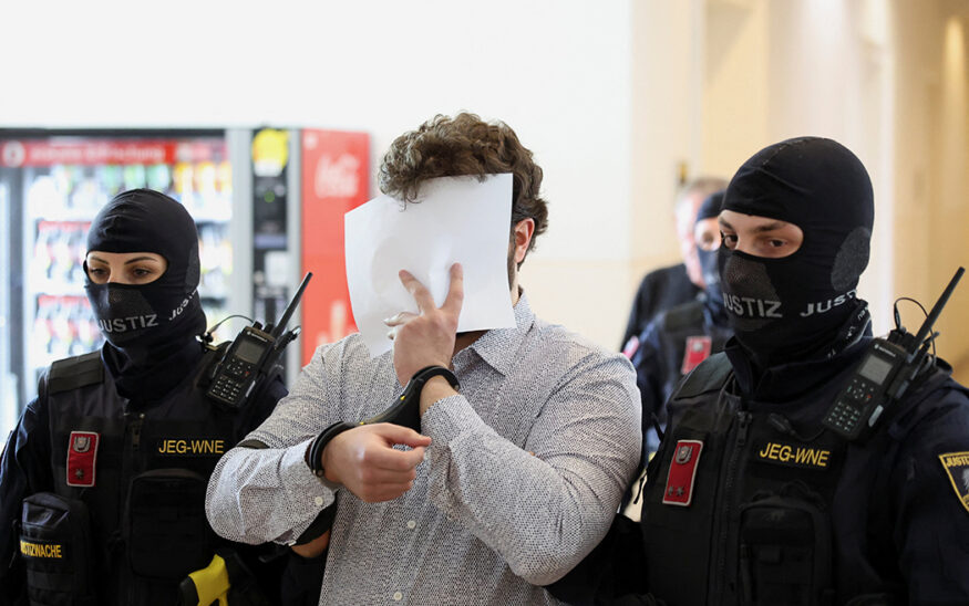 Both defendants covered their faces as they entered the courtroom, as is common in German-speaking countries to avoid being identifiable in photographs. Beran A wore a dark blue shirt and jeans, Arda K a light blue shirt and beige trousers.